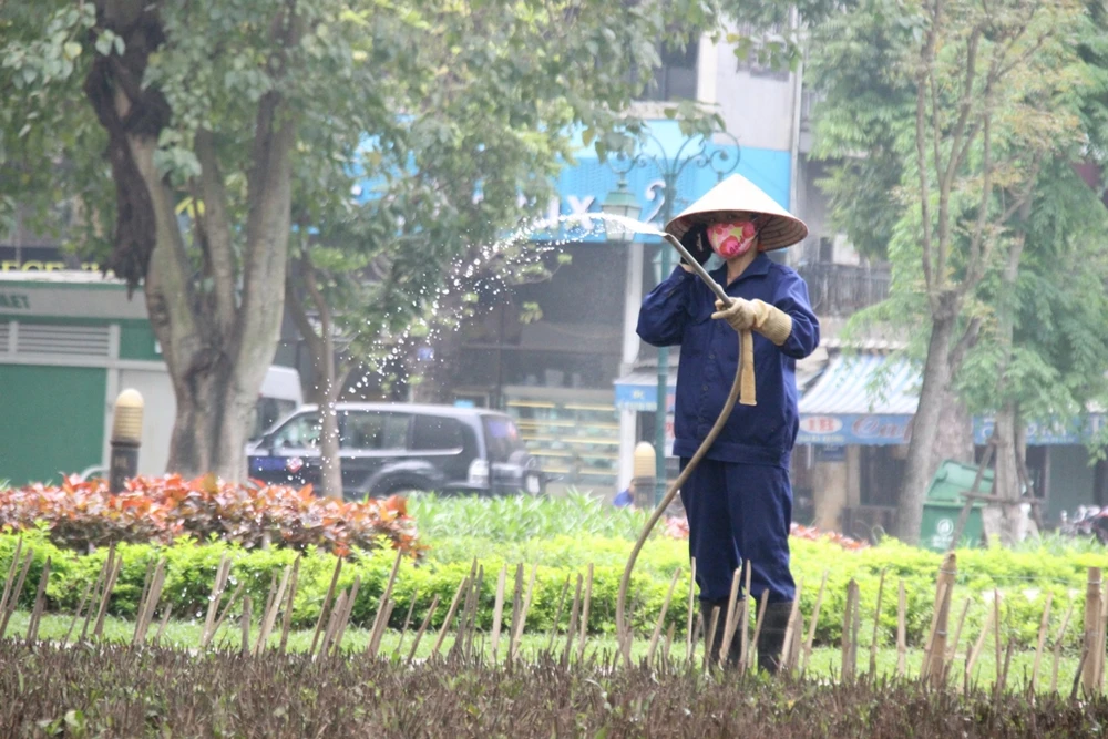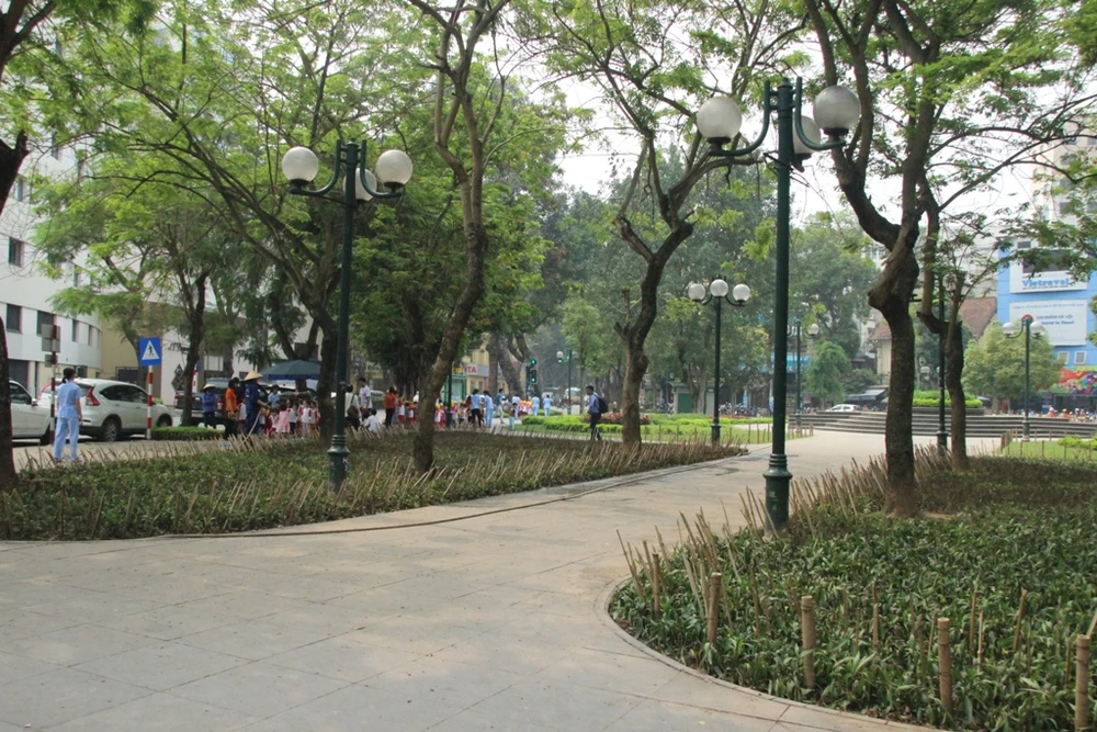 Sáng 10-4, ghi nhận tại khuôn viên vườn hoa khu vực gần Nhà hát lớn (Hà Nội), nhiều người dân bàn tán xôn xao về việc rất nhiều cọc tre bất ngờ được cắm tại đây.