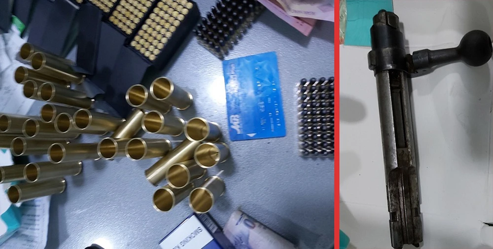 Qua kiểm tra, Tổ công tác 363 Công an TP phát hiện trong cốp xe có 37 hộp tiếp đạn cao su có 1.850 viên đạn, 30 vỏ đạn (chưa rõ chủng loại), một bộ kim hỏa súng quân dụng, bốn hóa đơn chuyển tiền…