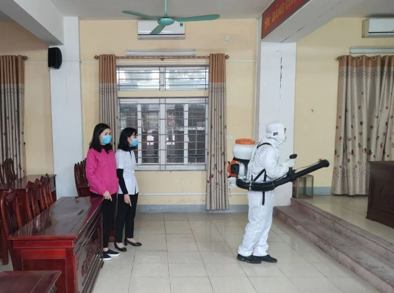 Một trường học ở Nghệ An phun khử khuẩn phòng ốc trong thời gian học sinh nghỉ học (Ảnh: Web Sở GD&ĐT)