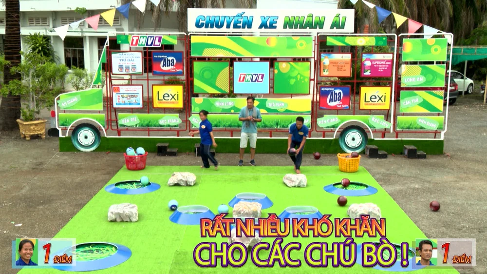 Ở vòng tranh tài đầu tiên của Chuyến xe nhân ái, hai người chơi phải vượt qua thử thách Phân loại “dưa hấu” (những quả bóng tượng trưng cho dưa hấu), họ có nhiệm vụ lăn những quả “dưa hấu” về đúng vị trí.
