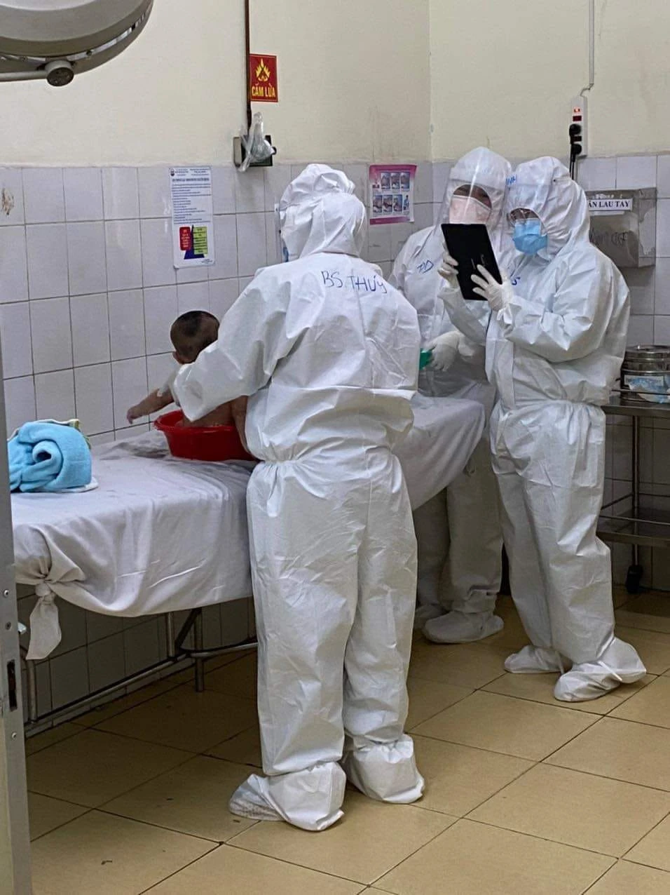 Ông bố và hai đứa con nhỏ, đứa 7 tháng, đứa 25 tháng thì chuyển qua BV Trưng Vương. Nhìn vô ai cũng xót thương nên đồng nghiệp mình sắp xếp chỗ ngon nhất trong khoa cho 3 bố con nằm chung.