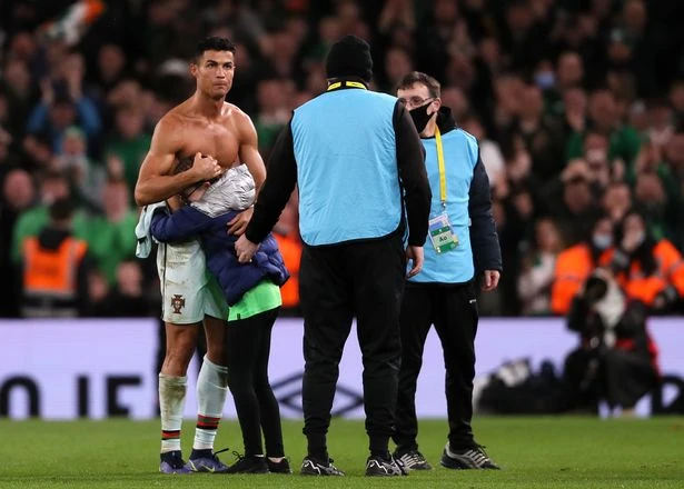 Sau trận Bồ Đào Nha hòa Ireland 0-0 ở vòng loại World Cup 2022, một cô bé 11 tuổi đã vượt qua hàng rào an ninh lao vào sân hướng về phía Cristiano Ronaldo.