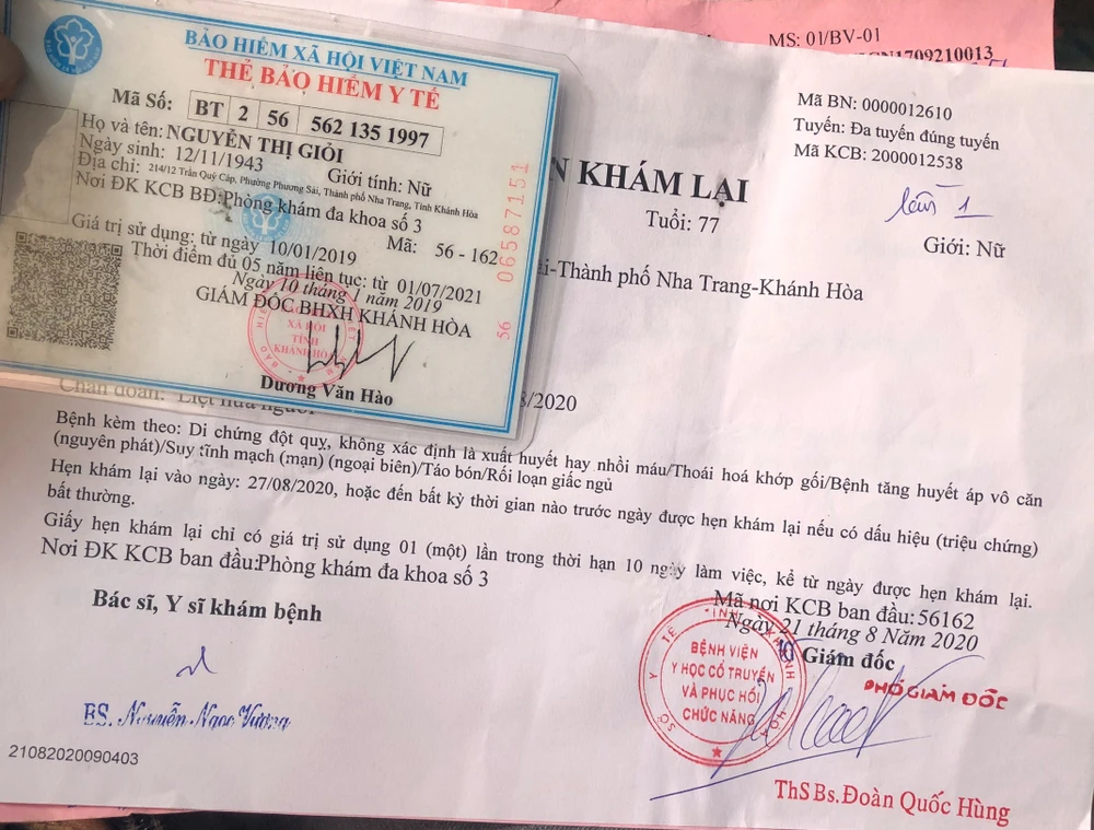 Giấy tờ khám sức khỏe của cụ Thọ. Ảnh: C.T