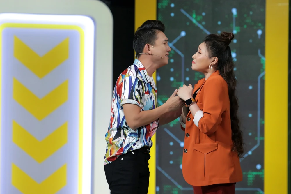Nôn nóng ghi điểm gỡ hoà nên Nhã Thy liên tục giành quyền trả lời câu hỏi trước hiệu lệnh của MC khiến chồng cô bị chiếc hộp ép xuống liên tiếp hai bậc nữa.