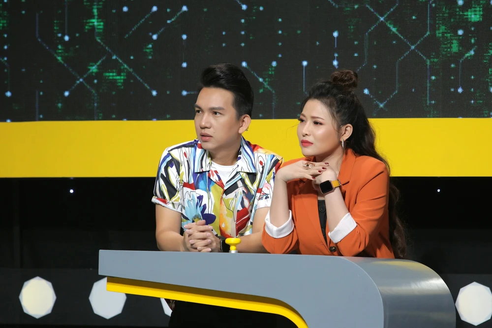 Nam nghệ sĩ cải lương Minh Trường và vợ đều đã hát bài này "cả tỷ lần". Anh khẳng định chắc nịch mình rất rõ lời bài hát và chọn ngay nhưng bảng điện tử lại hiện ra anh chọn đáp án sai.