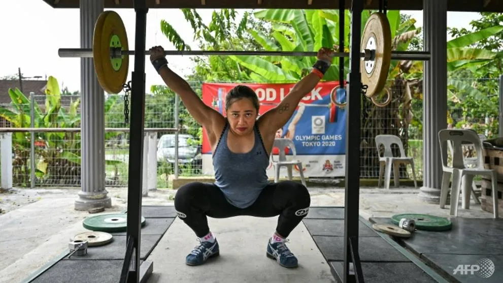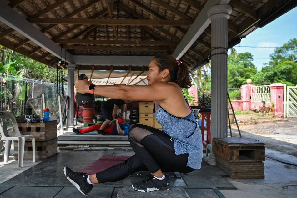 Hidilyn Diaz tập luyện tại nhà bố nuôi cũng là Phó Chủ tịch Liên đoàn Cử tạ Malaysia. Ảnh: Getty