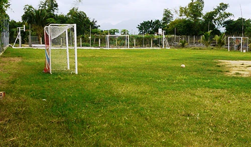 Sư cô hoan hỉ đưa chúng tôi đi thăm và giới thiệu các cơ sở vật chất của nhà chùa như sân chơi thể thao đa năng dành cho các em (bóng đá, bóng rổ, bóng chuyền, nhà bóng…), cỏ mặt sân đẹp, khung cầu môn… khá bài bản.