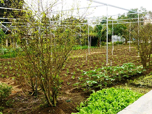Khu vườn trồng rau sạch trên 600 m2, đủ loại như cải xanh, su hào, cải bắp…đang phủ màu xanh đến mát mắt. Là công trình do Đoàn trường ĐH Nha Trang giúp đỡ xây dựng, đảm bảo đủ cung cấp rau sạch cho mái ấm. Đồng thời, vườn rau sạch còn là nơi để các em nhỏ tham gia lao động, chăm sóc rau, tổ chức các hoạt động ngoại khóa thiết thực...