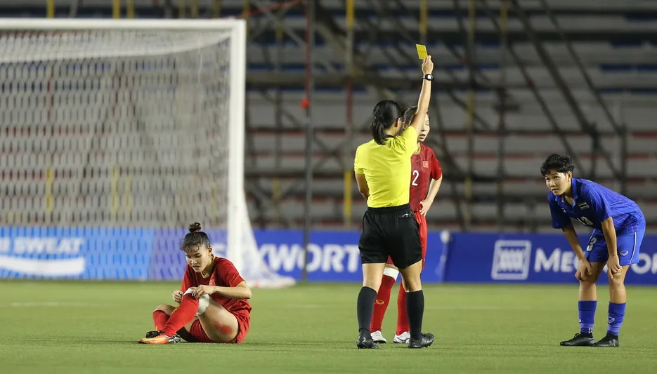 Chương Thị Kiều dũng cảm chơi bóng với chấn thương cũ nơi đầu gối trái vẫn quên mình lăn xả ngăn các đợt tấn công của tiền đạo Thái Lan khiến họ phải phạm lỗi.