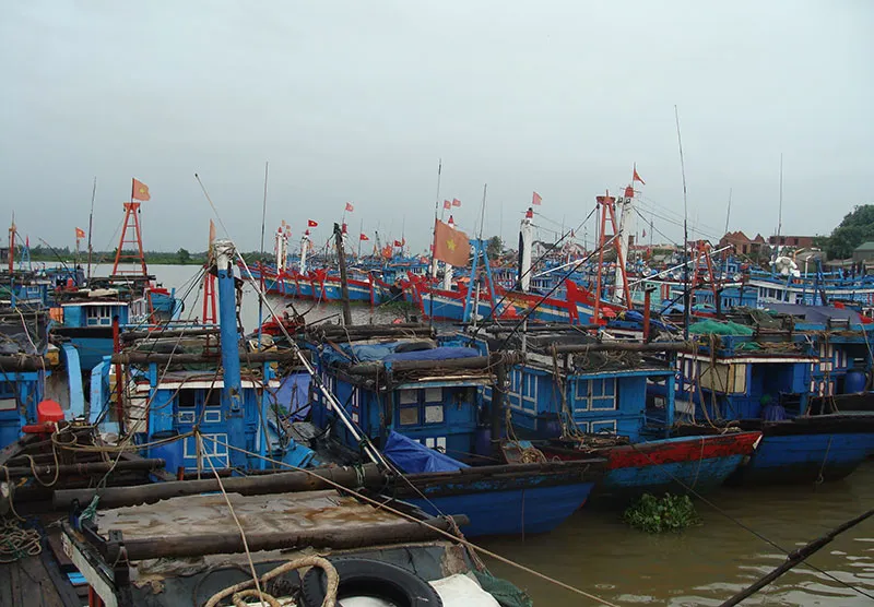 Tàu thuyền về núp gió lớn trên sông Tân Mỹ, xã Nghĩa An, TP Quảng Ngãi. Ảnh: V.QUÝ