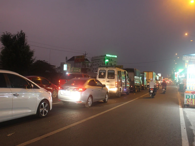 Kẹt xe hơn 10 km từ cầu Rạch Miễu đến TP Bến Tre từ chiều đến tối 18-1.