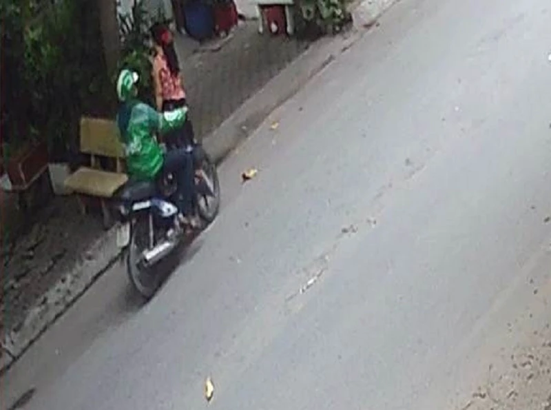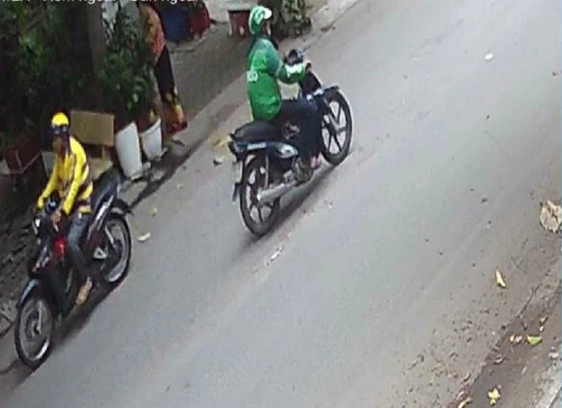 Lúc này, một nam thanh niên điều khiển xe máy, mặc trang phục xe ôm công nghệ chạy đến, áp sát giật sợi dây chuyền bà L. đang đeo trên cổ. Cú giật mạnh từ phía sau khiến bà L. ngã ra đường.
