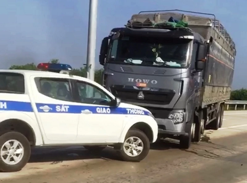 Tiếp đó, tài xế cho xe chạy lên cao tốc Đà Nẵng- Quảng Ngãi. Lúc này, tổ công tác đã báo lực lượng CSGT làm việc trên cao tốc đề nghị phối hợp chặn xe tải vi phạm ngay trạm thu phí trên cao tốc.