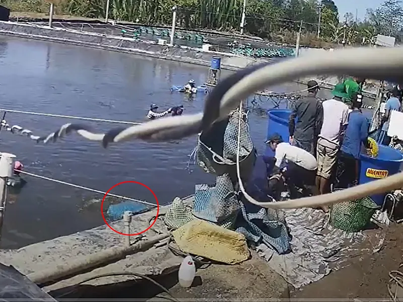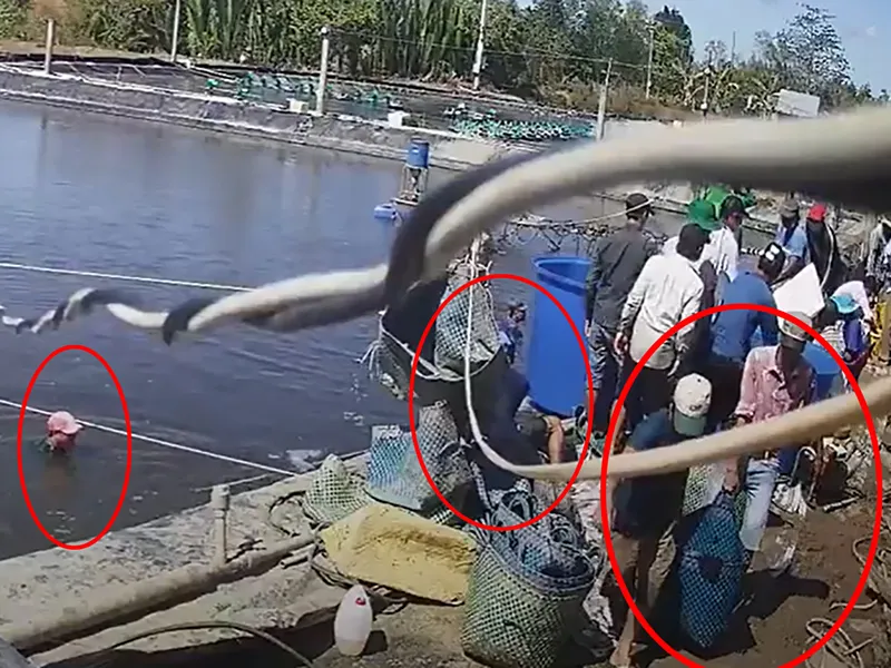 Mới đây, từ hình ảnh camera an ninh, các nông dân mới biết hàng tấn tôm đã bị thương lái trộm khi cân tôm.