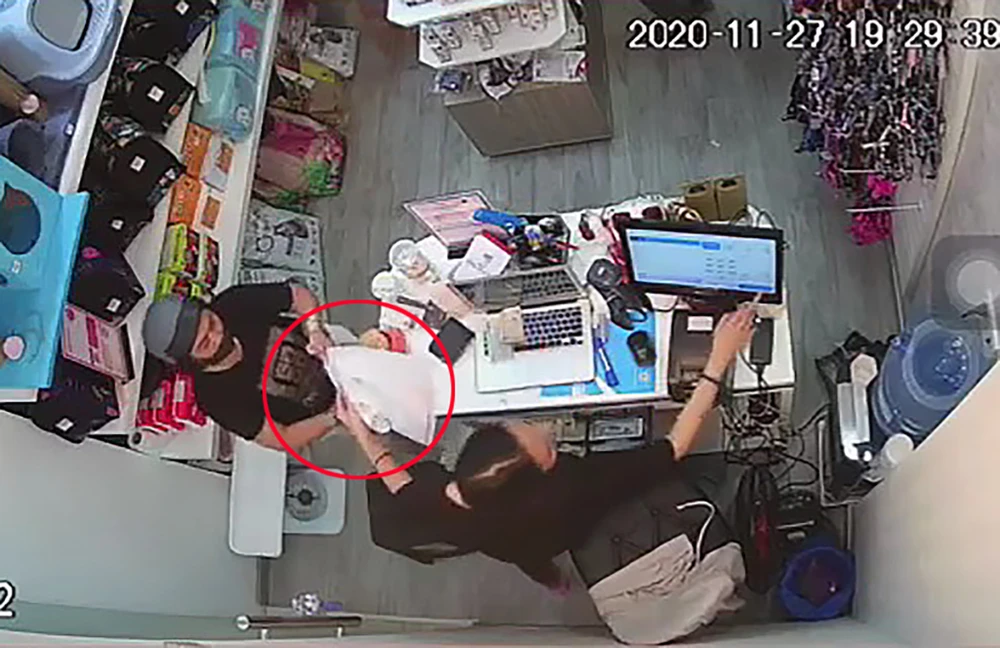 Theo hình ảnh từ camera an ninh, khoảng 19 giờ 30 tối 27-11, một phụ nữ có vẻ ngoài giống nam giới, khoảng 45 tuổi điều khiển xe máy hiệu Vision vào cửa hàng.