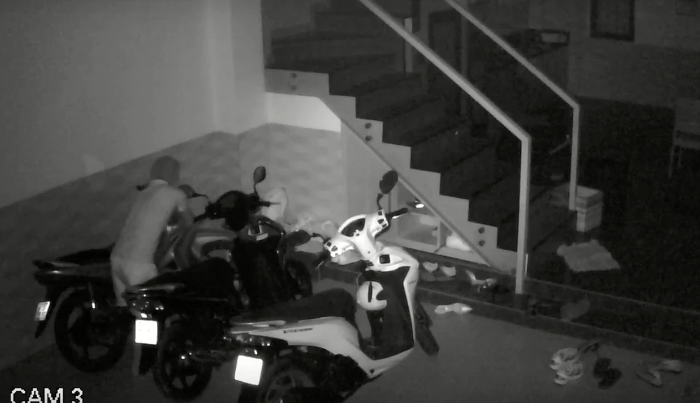 “Tên trộm này như từ trên trời rơi xuống vậy, không biết vào nhà bằng cách nào. Khi đột nhập vào nhà từ tầng 2 thì xuống tầng 1 cùng một tên trộm khác lấy chiếc xe máy Honda 37B1-432.13 của gia đình đi luôn” - ông Hưng trình bày.