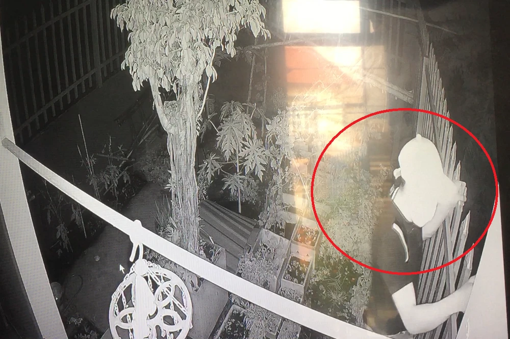 Theo hình ảnh camera ghi lại, lúc 2 giờ cùng ngày, một thanh niên đeo khẩu trang leo tường từ phía sau nhà. Phát hiện có camera, thanh niên này đã xoay camera đi hướng khác.