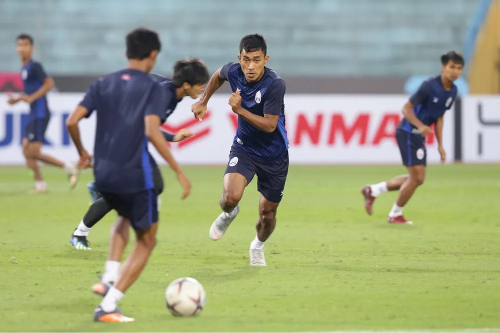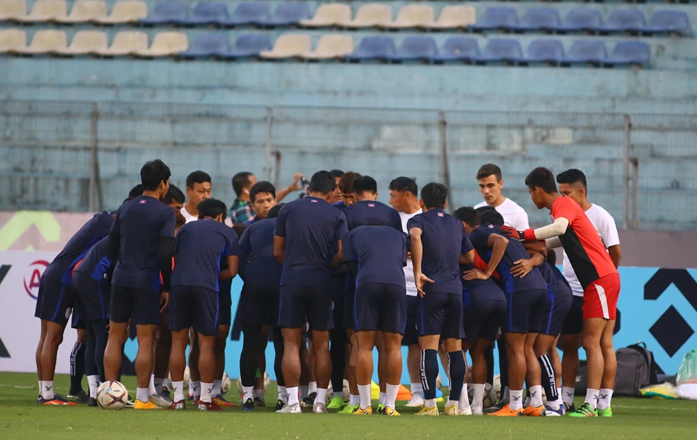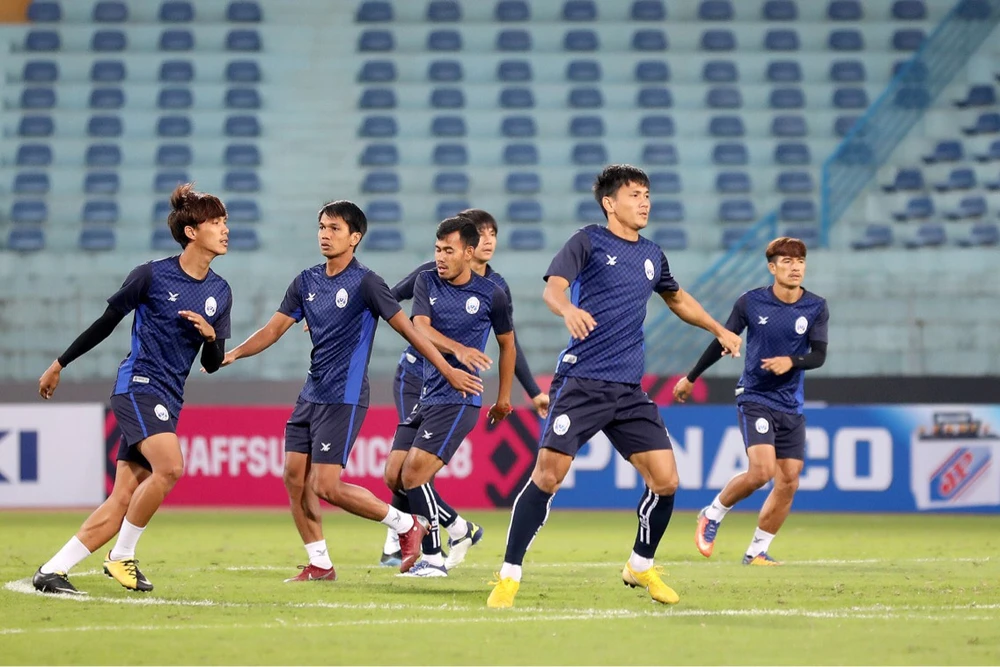 Các tuyển thủ Campuchia hăng hái rèn luyện với hy vọng gây bất ngờ trên sân của đội kèo trên Việt Nam.