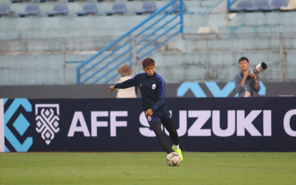 Hình ảnh của đội tuyển Campuchia trong buổi tập duy nhất chiều 23-11: