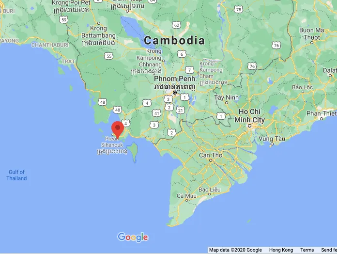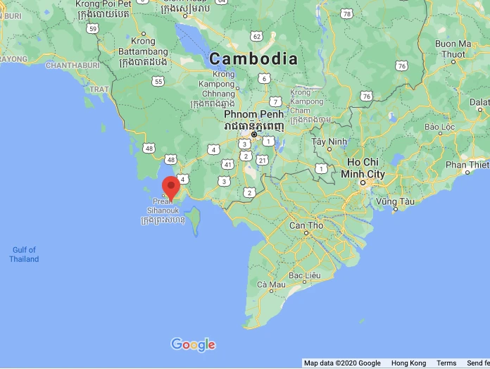 Căn cứ hải quân Ream (chấm màu đỏ) nằm ở phía nam Biển Đông. Ảnh: GOOGLE MAPS