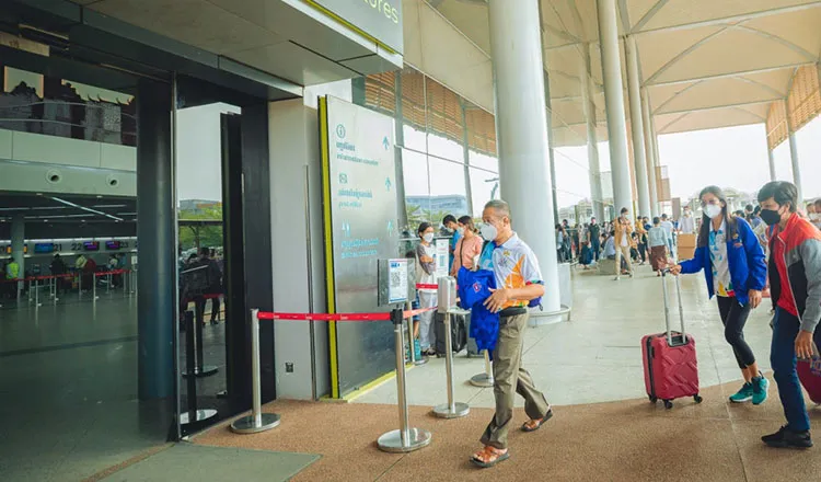 Ông Chamroeun ra sân bay quốc tế Phnom Penh để sang Hà Nội họp trưởng đoàn. Ảnh: K.T