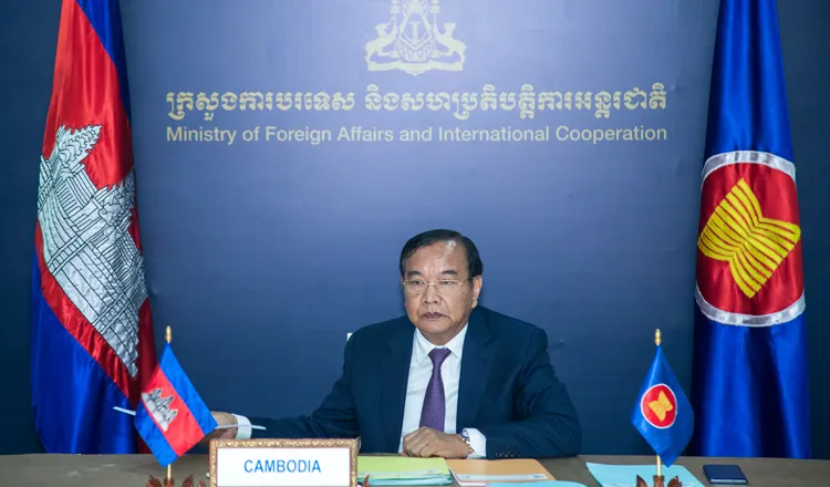 Bộ trưởng Ngoại giao Prak Sokhonn tham dự hội nghị trực tuyến Bộ trưởng Ngoại giao ASEAN không chính thức ngày 24-6. Ảnh: FACEBOOK