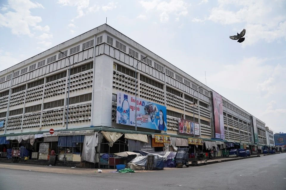 Một khu chợ ở thủ đô Phnom Penh (Campuchia) phải đóng cửa do dịch COVID-19. Ảnh: REUTERS