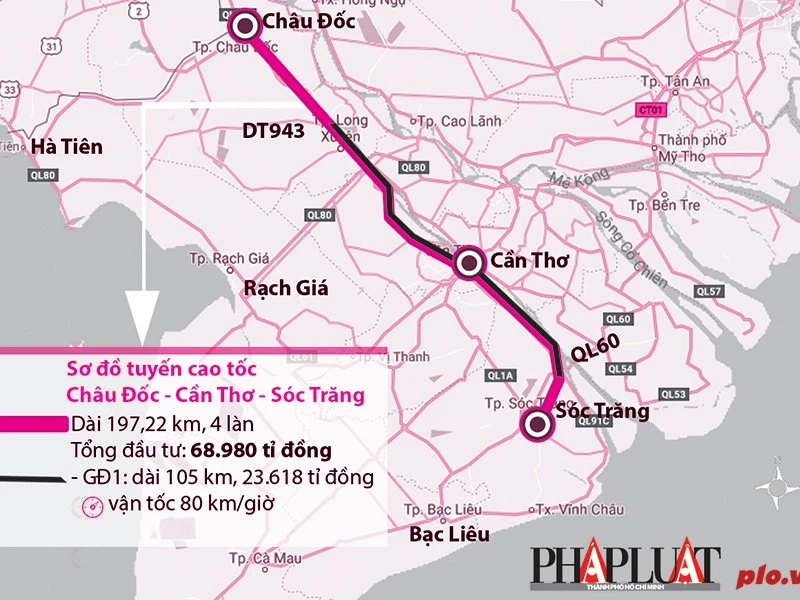 Đơn vị nghiên cứu cũng đề xuất phân kỳ đầu tư cao tốc thành ba dự án thành phần gồm Châu Đốc - Lộ Tẻ - Rạch Sỏi (dài 63,4 km)...