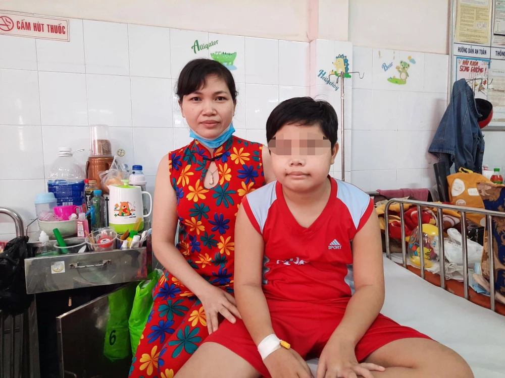Bé trai sau ca phẫu thuật u mũi họng đã ổn định và xuất viện. Ảnh: BVCC