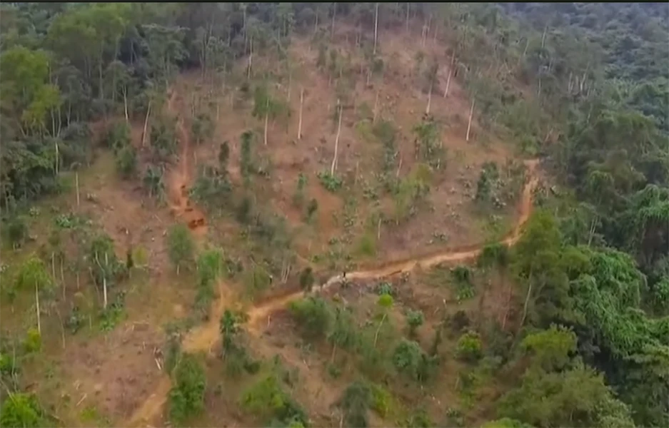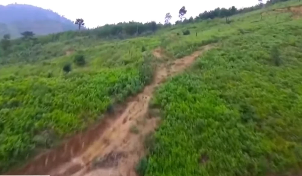 Rừng phòng hộ đầu nguồn ở xã Bắc Sơn nhìn từ trên cao cho thấy đã bị cạo "trắng".