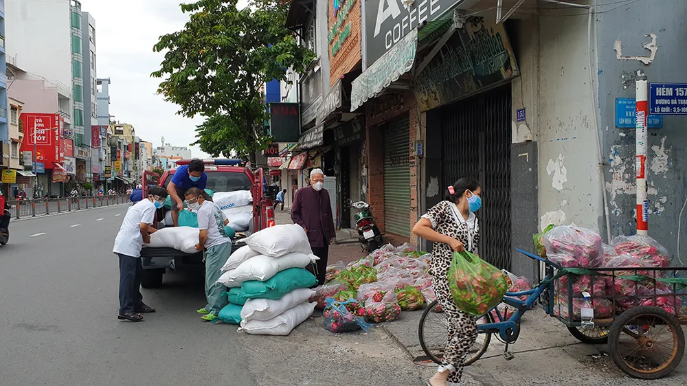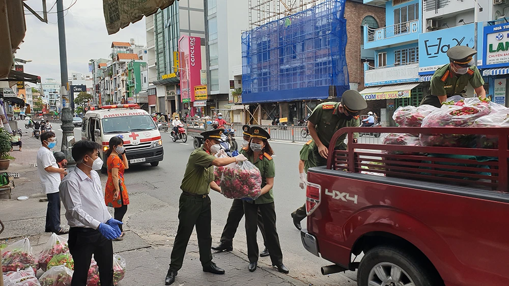 Trong ngày, các cán bộ chiến sĩ Cục An ninh Nội địa cũng gửi tặng bà con ở khu vực phường Nguyễn Cư Trinh (quận 1, TP.HCM) khoảng 500kg thanh long.