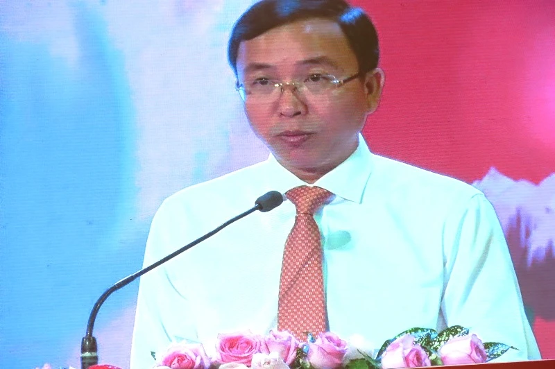 Ông Đặng Quốc Toàn, Bí thư Quận ủy quận 10, phát biểu tại buổi lễ. Ảnh: TÁ LÂM
