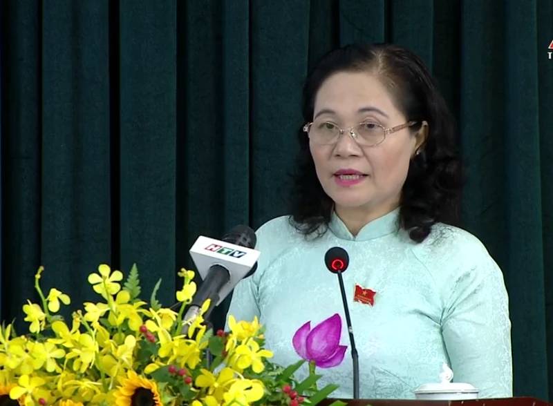Chủ tịch HĐND TP Nguyễn Thị Lệ phát biểu bế mạc kỳ họp HĐND TP.HCM lần thứ 20. Ảnh: TÁ LÂM
