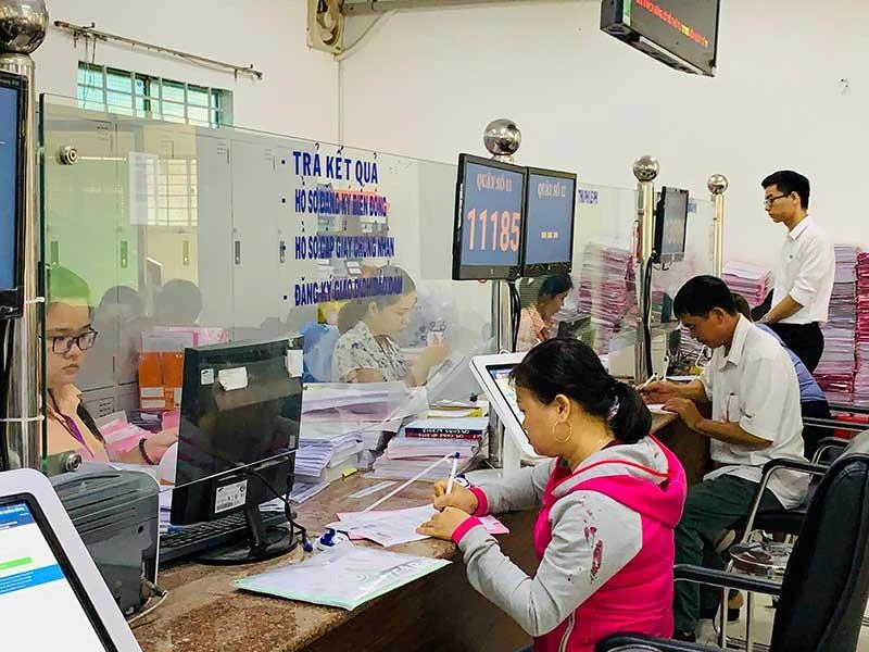 Người dân huyện Hóc Môn đến nhận kết quả tại bộ phận một cửa. Ảnh: VIỆT HOA
