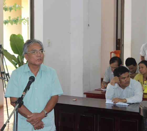 Ông Trần Văn Gôm, nguyên Chủ tịch UBMTTQ Việt Nam tỉnh Bình Phước tại tòa.