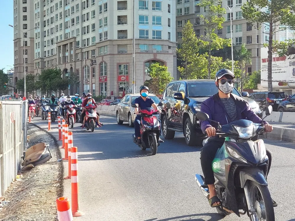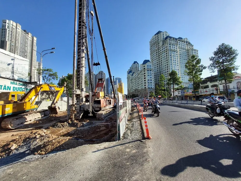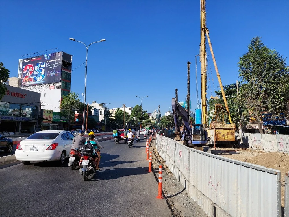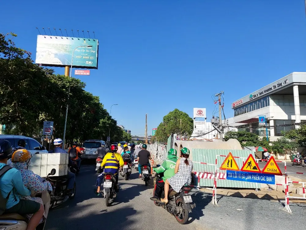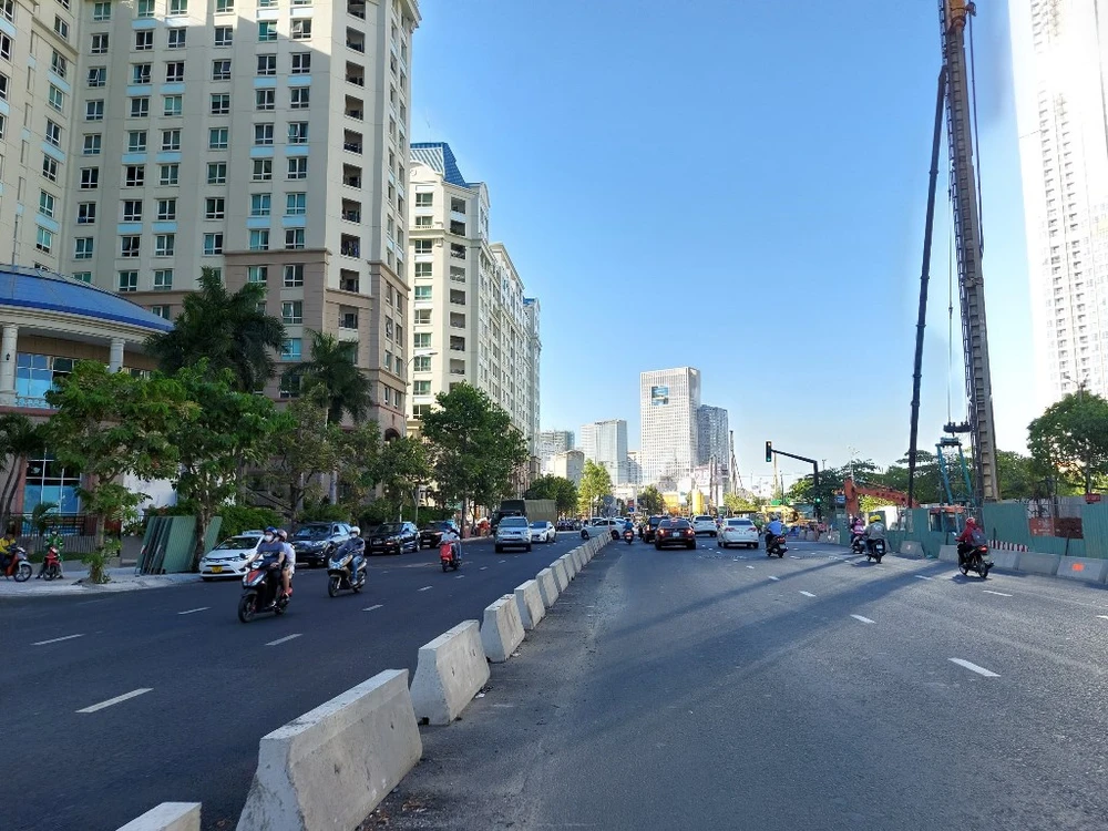 Tuy nhiên, do rào chắn xây dựng chiếm 2/3 diện tích mặt đường nên vào giờ cao điểm hướng quận Bình Thạnh thường xuyên kẹt xe.