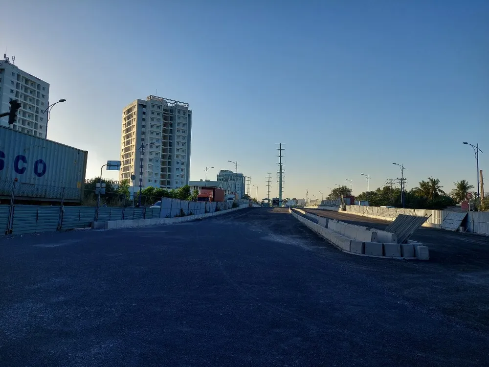 Theo chủ đầu tư, hiện nay công trình đã thi công được khoảng 80% tổng khối lượng công trình. Còn một số hạng mục như bê tôn nhựa, gia cố nền đất yếu, kết nối giao thông và chiếu sáng đang được nhà thầu khẩn trương thực hiện.