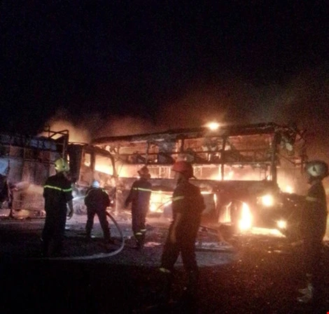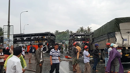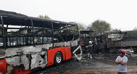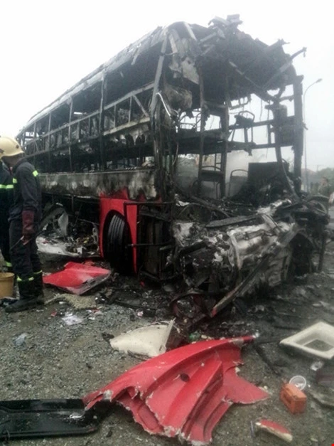Chùm ảnh 2 xe khách tông nhau bốc cháy khiến 12 người thiệt mạng: