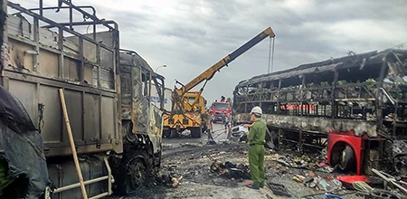 (PLO)- Vụ tai nạn đặc biệt nghiêm trọng 2 xe khách tông nhau bốc cháy khiến 12 người thiệt mạng và 36 người bị thương.