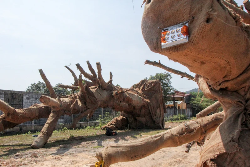 Ngày 5-3, ông Chung xin phép UBND xã Tam Giang khai thác cây đa này để tặng cho một ngôi chùa ở Hà Nội. Khi đang trên đường vận chuyển ra Hà Nội, tối 30-3, ba xe tải mang này đi theo QL1A qua địa phận xã Lộc Điền (huyện Phú Lộc) bị CSGT phát hiện.