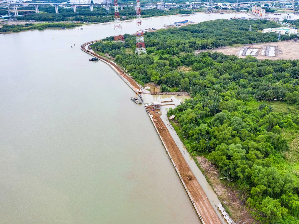 Đê kè bao bọc một khu nội đô của dự án. Theo chủ đầu tư (Công ty TNHH Trung Nam BT 1547), hiện dự án đã đạt tiến độ 96% và có nguy cơ tạm ngừng nếu không được tháo gỡ khó khăn về vốn, phụ lục hợp đồng.