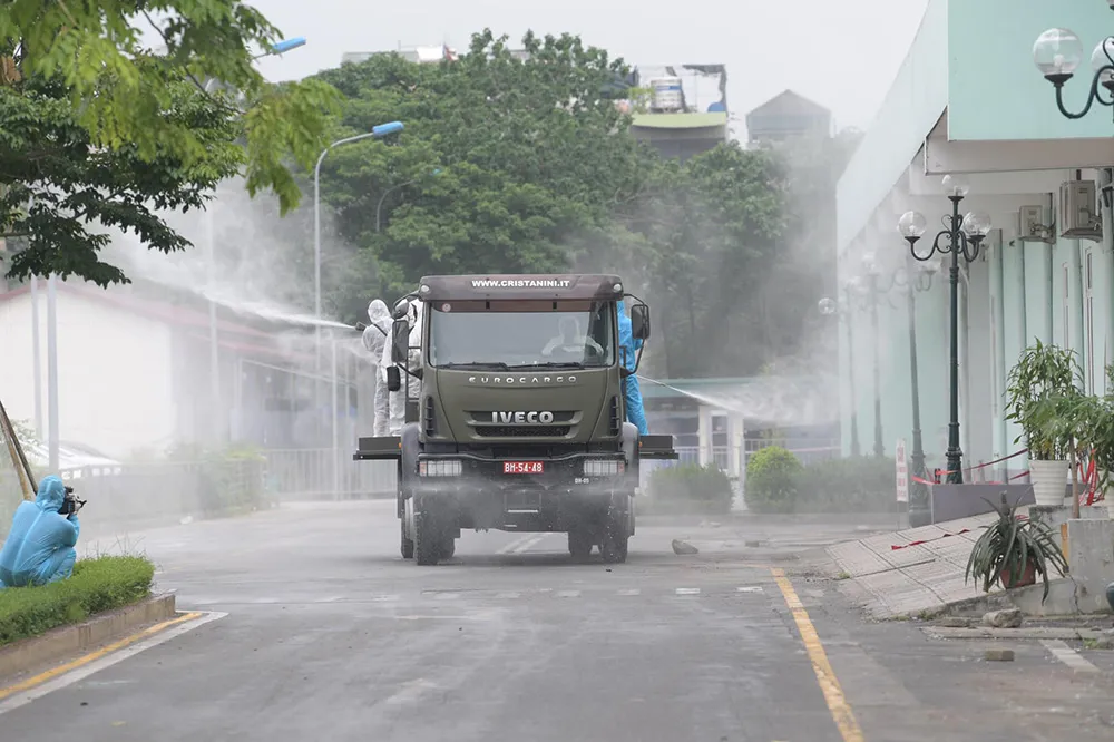 Đến khoảng 13 giờ 30 ngày 7-5 đã hoàn tất phun khử khuẩn Bệnh viện K cơ sở Tân Triều (Thanh Trì)
