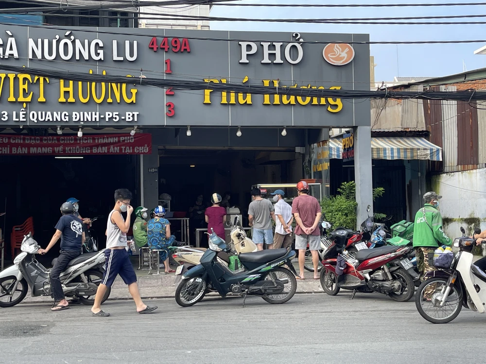 Người dân xếp hàng trước một cửa hàng trên đường Lê Quang Định (Bình Thạnh).
