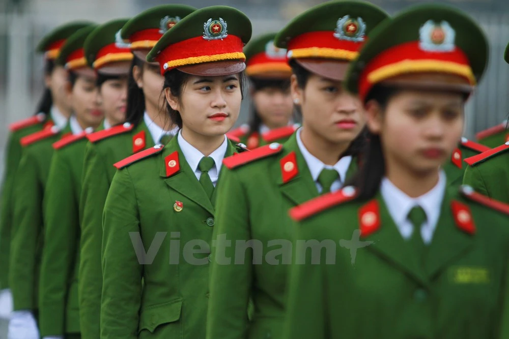 Những học viên nữ xinh xắn cũng được huy động. (Ảnh: Minh Sơn-Sơn Bách/Vietnam+)