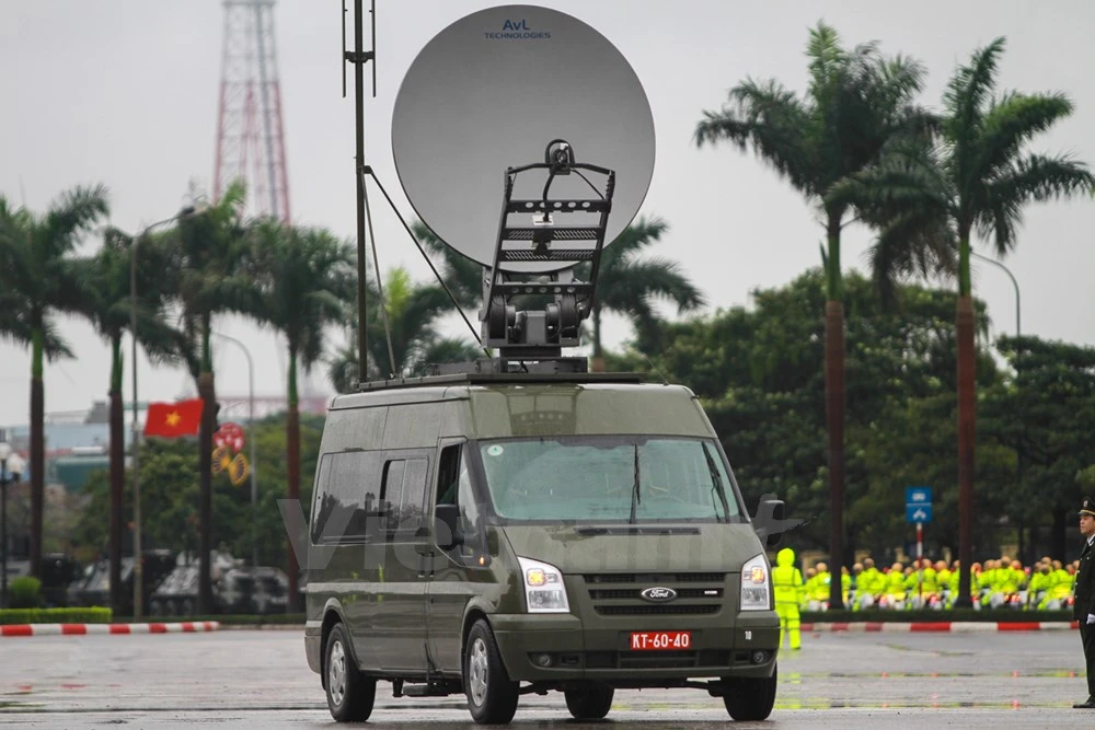 Xe Chỉ huy thông tin của Bộ Tư lệnh Thủ đô gồm có xe thông tin vệ tinh VCD1 và VCD2 với tính năng truyền hình kỹ thuật số trực tiếp, truyền ảnh qua vệ tinh. (Ảnh: PV/Vietnam+)