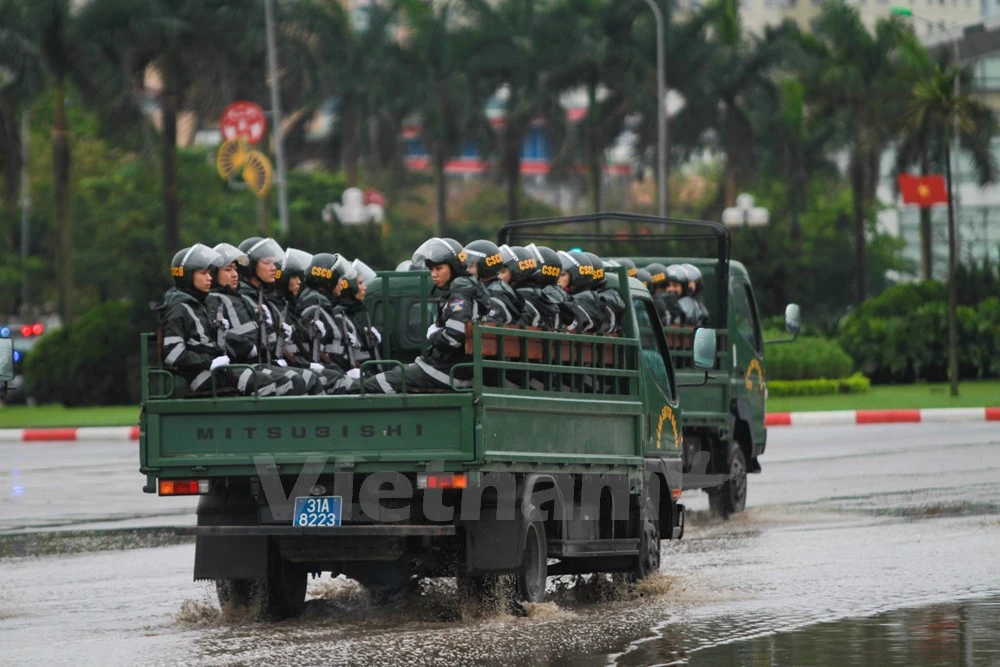 Lực lượng cảnh sát cơ động Hà Nội được huy động 100% quân số tham gia ứng trực bảo vệ cho IPU. (Ảnh: Minh Sơn-Sơn Bách/Vietnam+)
