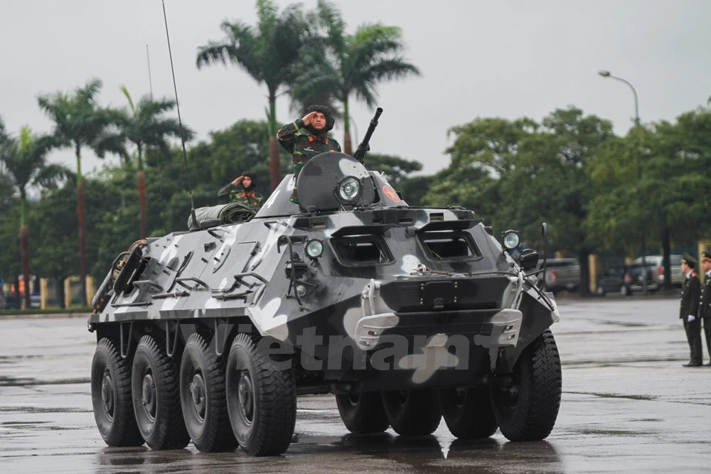 Xe thiết giáp bánh lốp (BTR-60PB) của Bộ tư lệnh Thủ đô được trang bị vũ khí có hỏa lực mạnh, chở được 9 người với nhiệm vụ phòng chống bạo loạn, đánh chiếm mục tiêu. Xe có trang bị hệ thống bơi nước có thể tìm kiếm cứu nạn. (Ảnh: PV/Vietnam+)