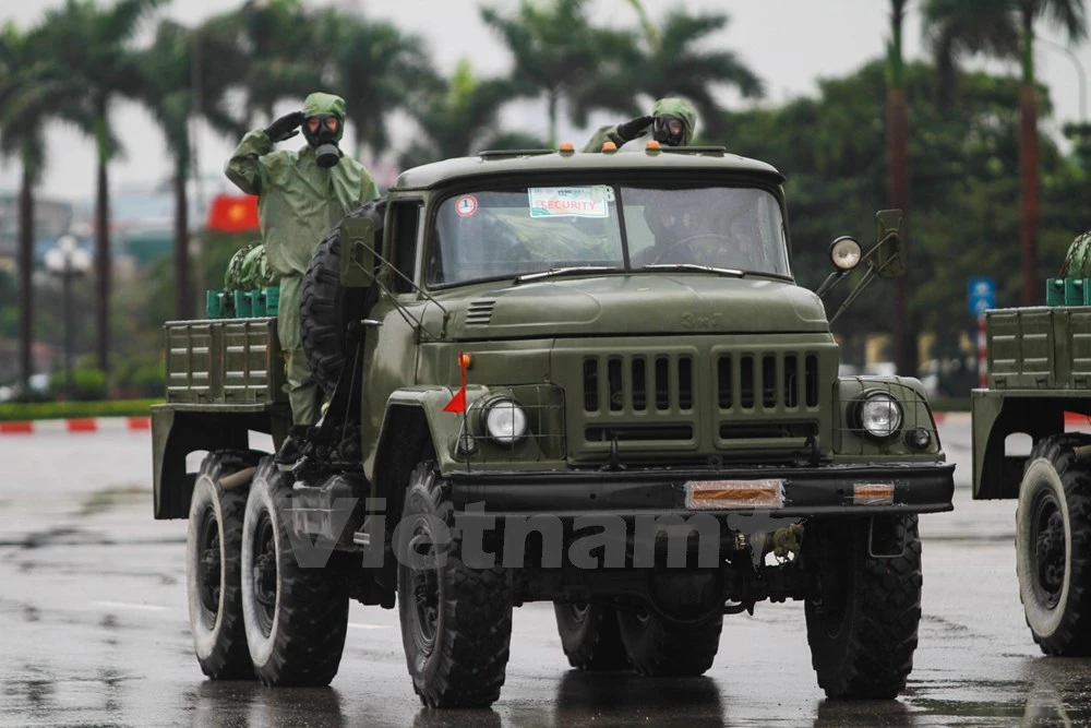 Khối xe Phòng hóa – Bộ Tư lệnh Binh chủng Hóa học – Bộ Quốc phòng gồm các xe trinh sát, phòng xạ hóa học, hạt nhân… làm nhiệm vụ xử lý các tình huống tác chiến phòng thủ có sử dụng vũ khí hóa học, hạt nhân. Xe tiêu tẩy ARS-14 dùng để tiêu độc, tẩy xạ, diệt trùng. (Ảnh: PV/Vietnam+)