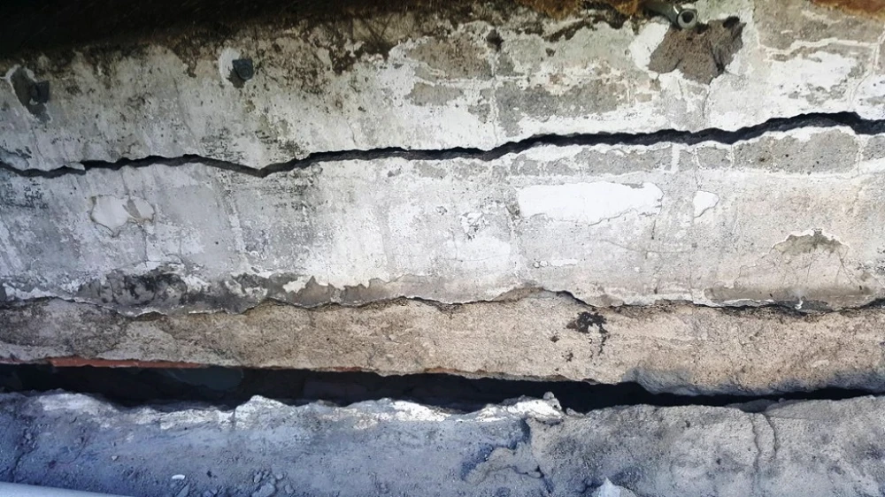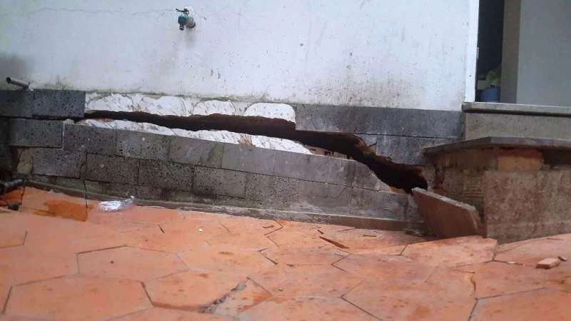 Bức tường, móng xuất hiện nhiều vết nứt lớn.