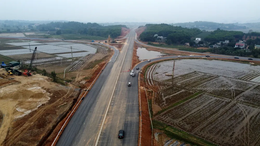 Tuyến Cao tốc Mai Sơn - Quốc lộ 45 nhìn từ trên cao như một dải lụa đẹp. Ảnh: ĐẶNG TRUNG |
